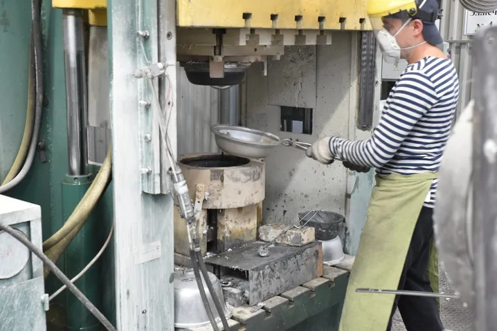 Чтобы изделие приобрело окончательный вид, проводятся дополнительные этапы обработки. Сначала при помощи пресса остывшая отливка отделяется от литника – лишнего металла, который подавался в процессе заливки в форму по специальным каналам. Затем обрабатывается верхняя кромка изделия, после чего оно принимает готовый вид. Посуда с антипригарным покрытием дополнительно проходит пескоструйную обработку, покраску и проточку дна.