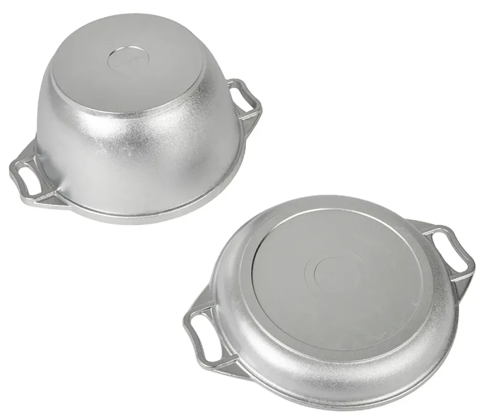 Независимо от наличия антипригарного покрытия, на алюминиевых казанах с крышкой‑сковородой объёмом 3 л и 4 л логотип всегда размещается только на дне. На крышке маркировка не предусмотрена.